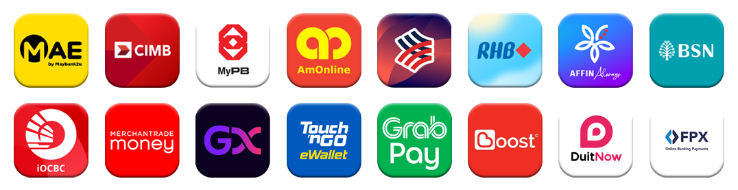 E-Wallets – Touch ‘n Go, GrabPay, BoostPay
